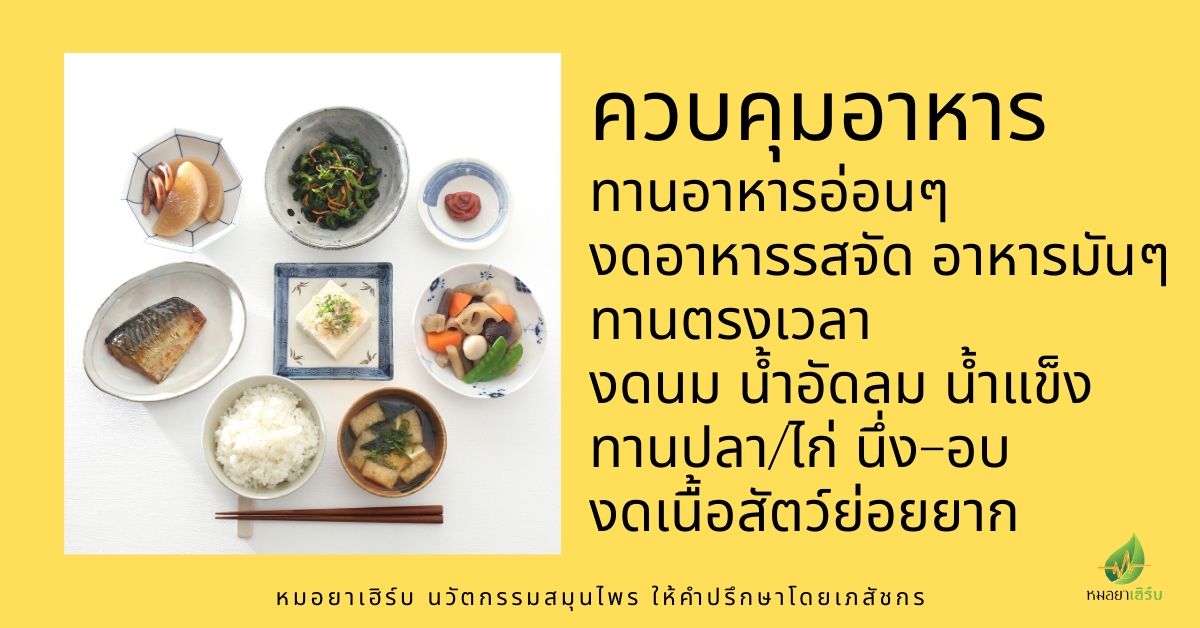 ช่วงของการรักษา เราก็ ควบคุมอาหารไปด้วยนะคะ ทานจืดๆ ไม่ทานรสจัด ไม่ทานอาหารย่อยยาก ไม่ทานอะไรที่จะทำให้อืดแน่นท้อง เช่น พวกแตงโม นม นมถั่วเหลือง พวกนี้จะงดเลย แต่โชคดีที่ทางร้านที่จำหน่าย เป็นเภสัชกรดูแล เค้าก็จะมีให้คำแนะนำ รายการอาหารที่ควรเลี่ยงไว้ให้ ทำให้เราหายไวขึ้น